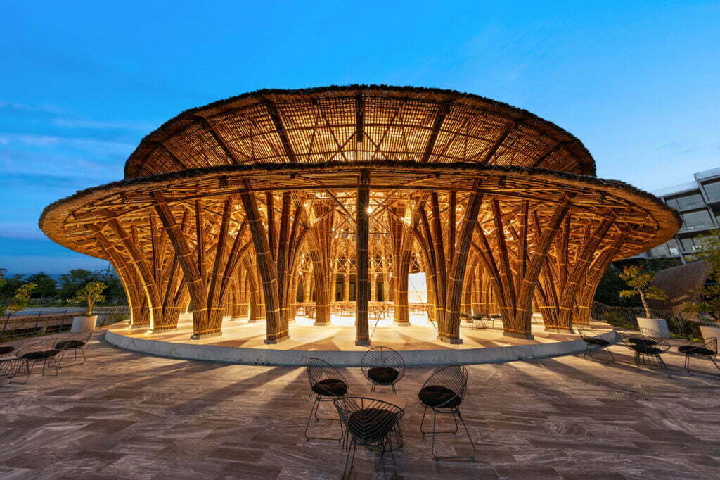 Việc sử dụng tre nói chung trong kiến trúc, chịu sự chi phối mạnh mẽ bởi vị trí địa lí của công trình kiến trúc đó. Ở những nơi tre mang ý nghĩa lớn, chúng trở thành loại vật liệu đáng kinh ngạc về độ linh hoạt, độ bền và sự vững chắc. Tre sẽ là một loại vật liệu hữu ích cho nhiều mục đích sử dụng.